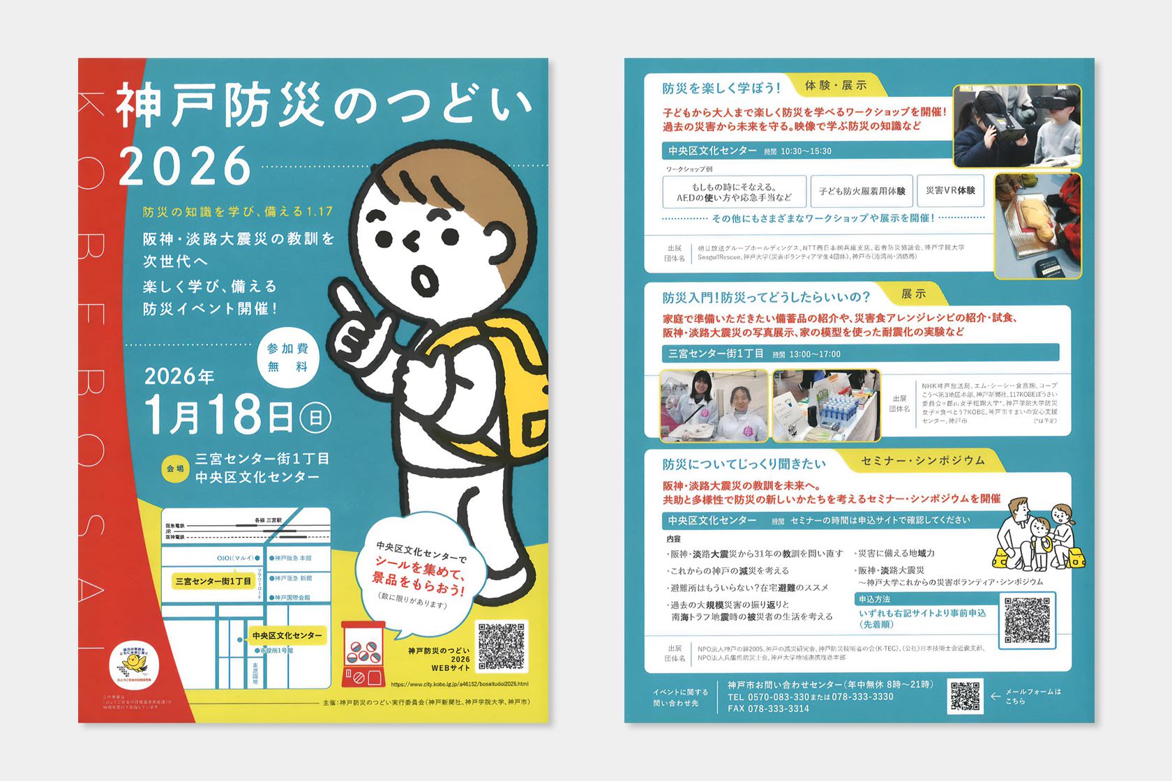 I designed the visuals for this event, scheduled for January 18, 2026. Dedicated to passing on the legacy of the Great Hanshin-Awaji Earthquake, the gathering features everything from engaging workshops to technical seminars to help the community prepare for future disasters.
