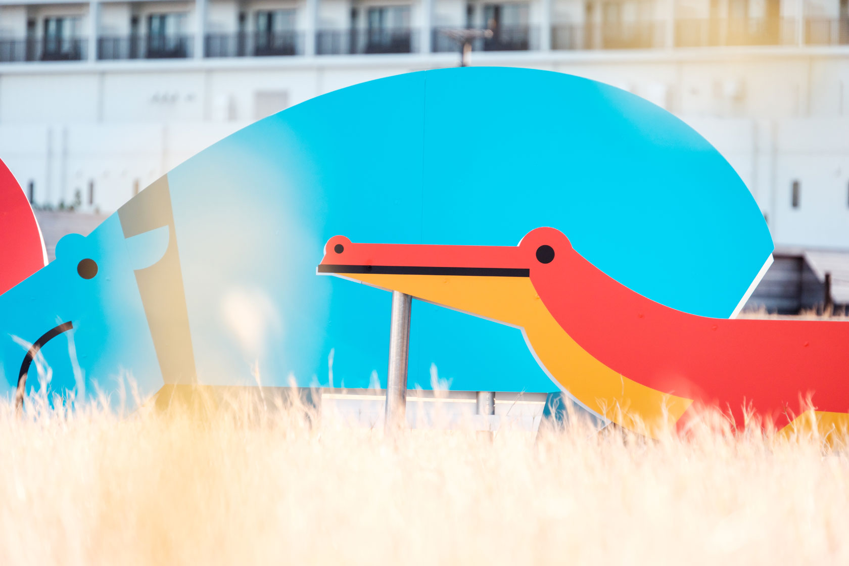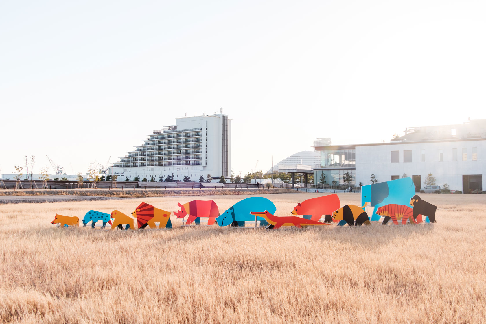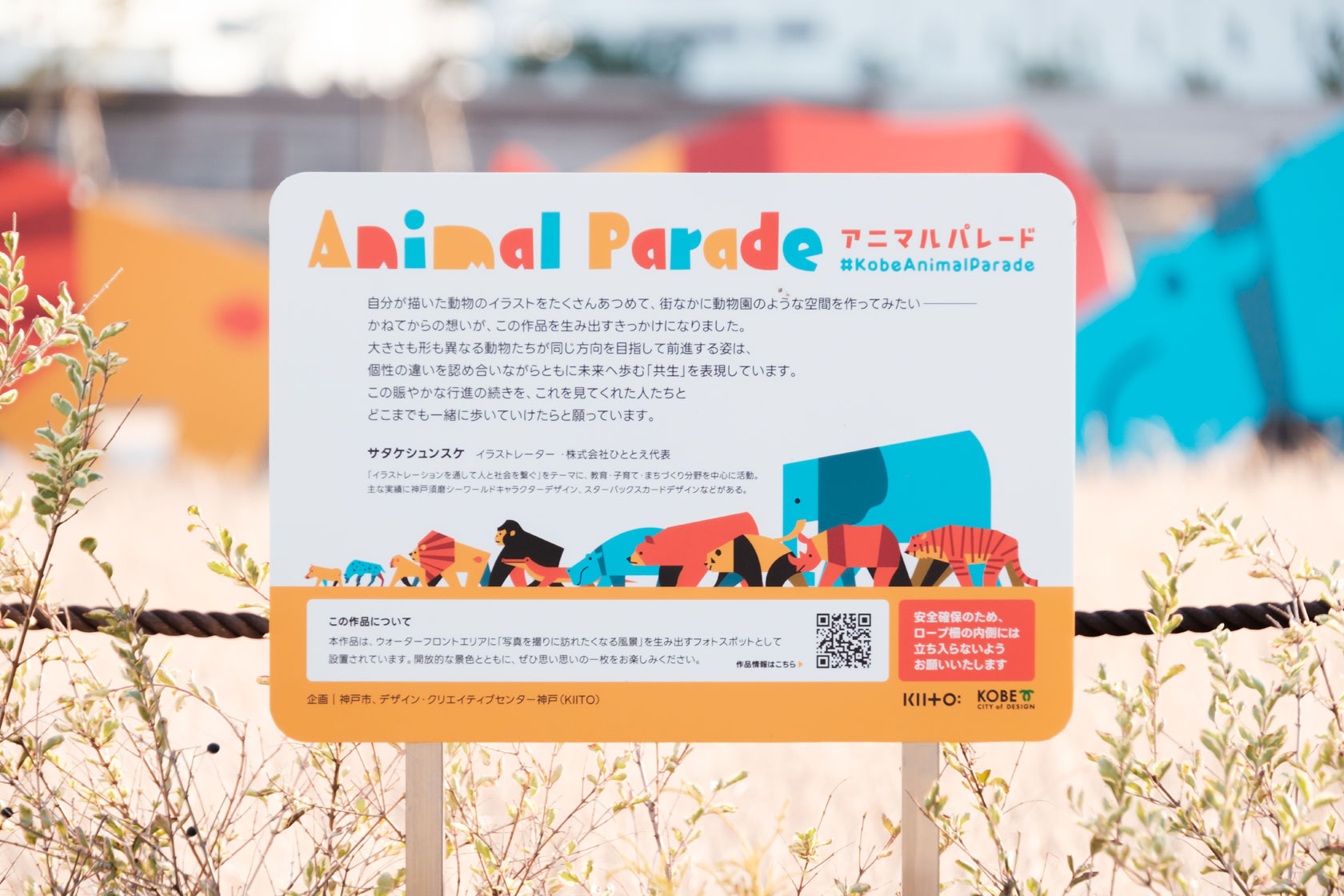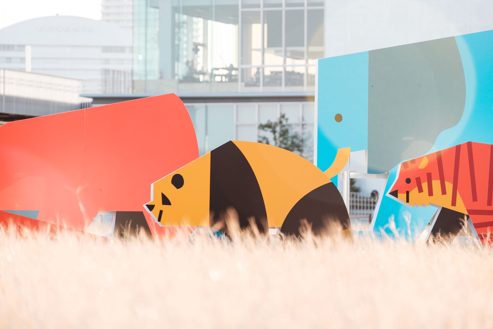 My animal illustrations have come to life as a limited-time art installation at the Arena North Plaza in the Kobe Sannomiya Waterfront area. These colorful pieces, featuring a cast of unique characters, add a vibrant touch to the evolving “NEW SEAPORT” landscape. Set against the open waterfront, it is designed to be a perfect photo spot. We hope you enjoy capturing a one-of-a-kind moment that can only be found here.