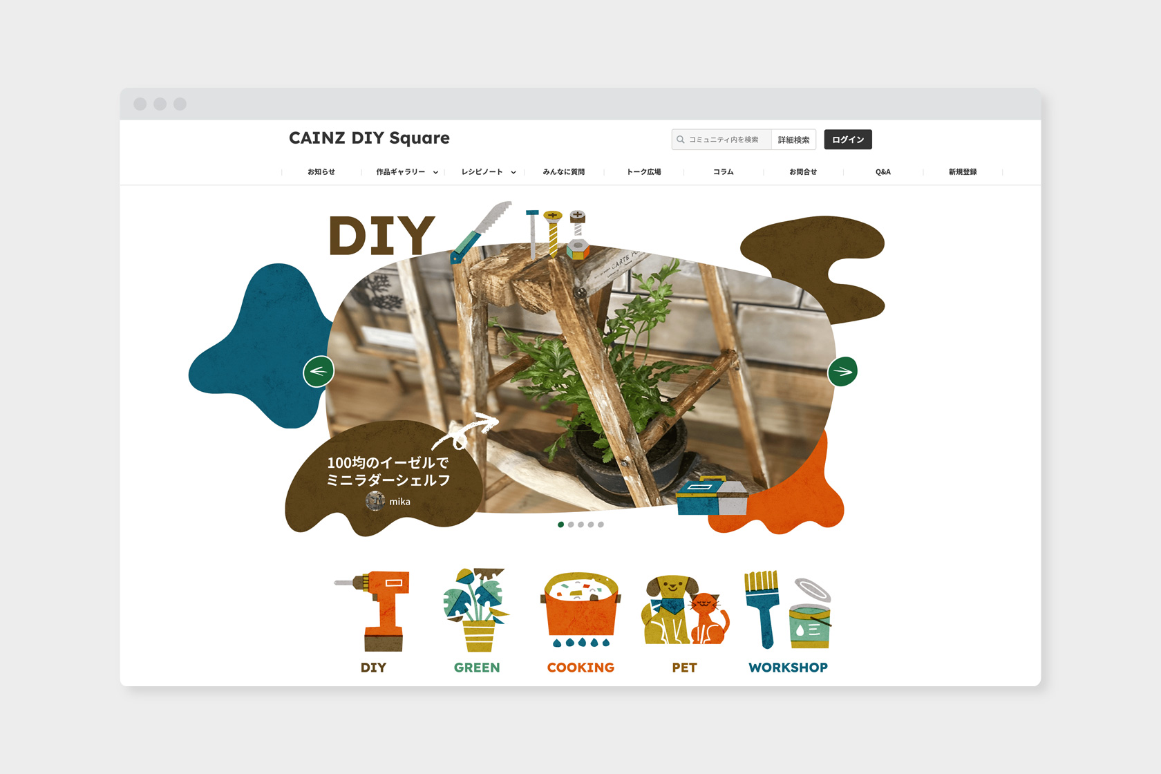 CAINZ(カインズ)が運営する DIY・暮らし・創作のコミュニティサイト“CAINZ DIY Square”のためのイラストレーションを制作しました。