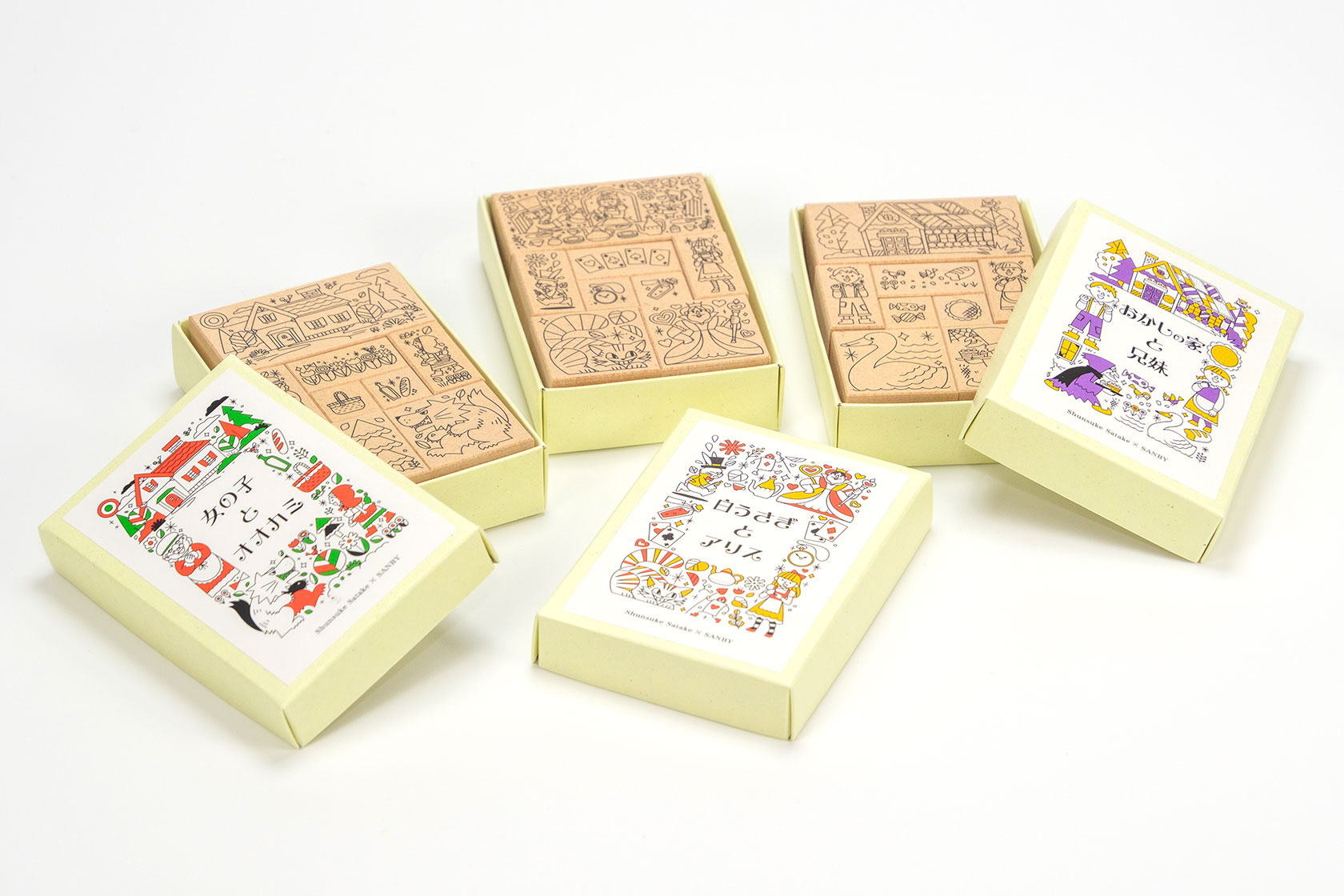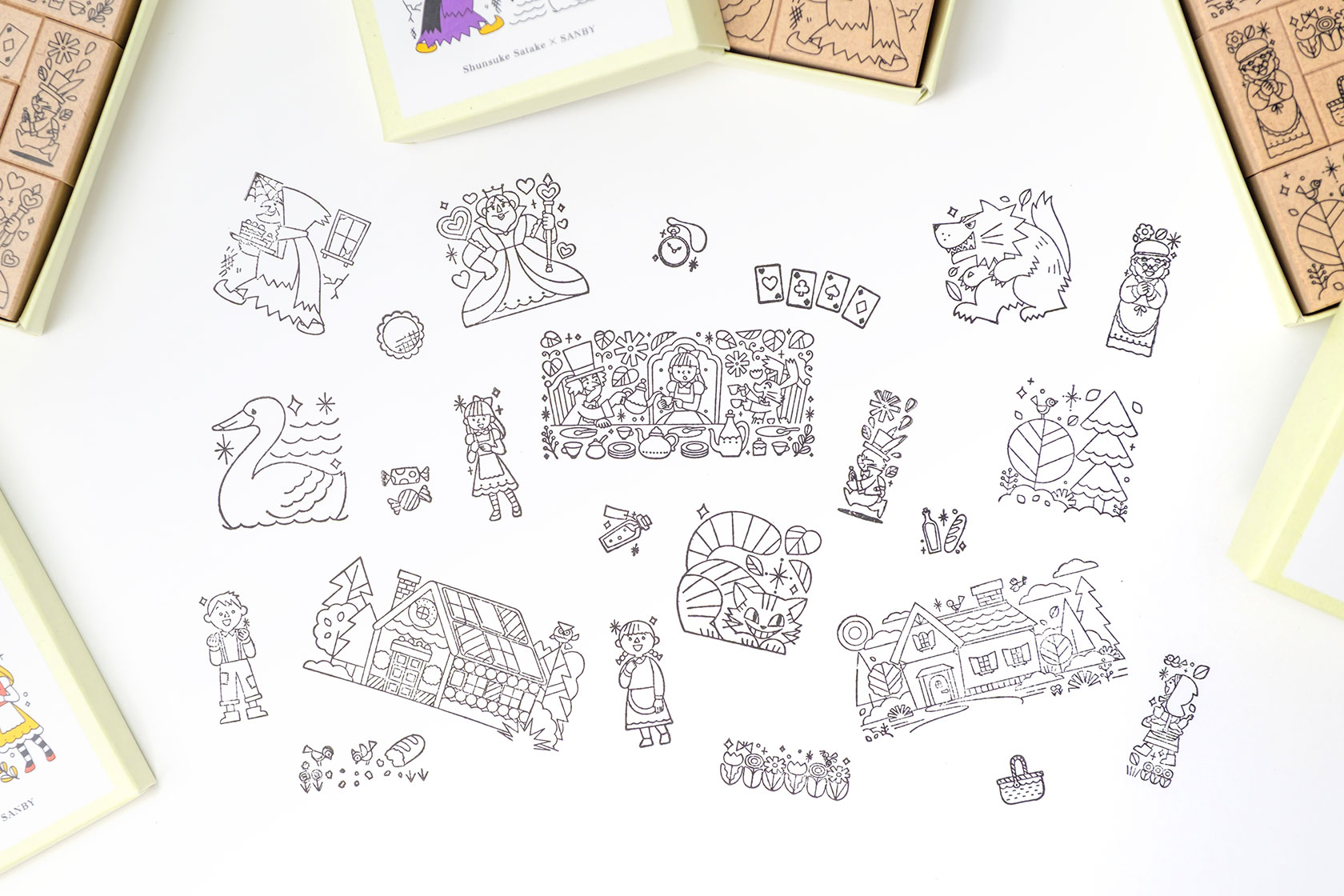 童話の世界をスタンプにしたデザインスタンプ。手帳やカードなどちょっとしたすき間をかわいく彩ります。押した後に色鉛筆などで着色する使い方もオススメです。